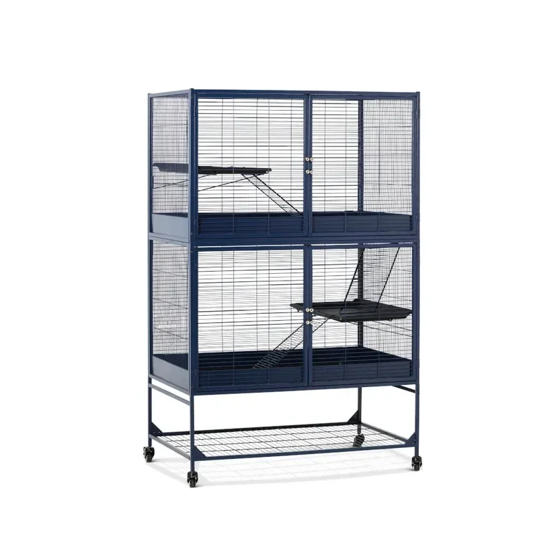 Unser persönlicher Favorit und daher auch unsere Empfehlung an dich. Vier große Flügeltüren mit denen die gesamte Front zu öffnen ist. Er ist Komplett aus Metall - auch die herausnehmbaren Bodenwannen. Das macht diesen sehr stabilen Käfig kinderleicht zu reinigen. Dazu ist er unser Preis-/Leistungssieger, da er zudem der günstigste auf unserer Liste ist.